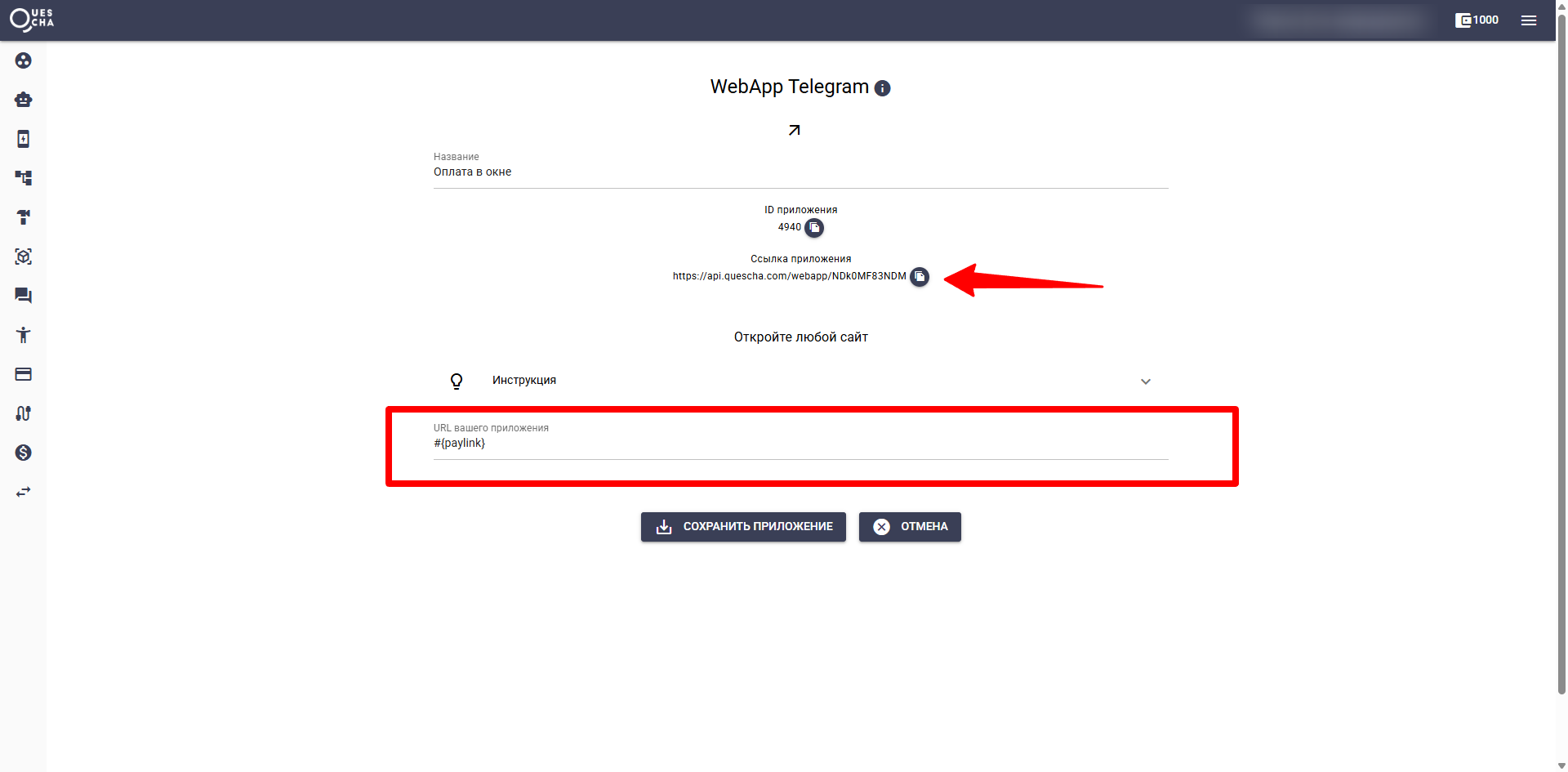 Если хотите, чтобы платеж открывался внутри окна Телеграма, то добавьте приложение на странице Списки/WebApp, тип приложения "Открыть URL". В поле "URL вашего приложения" поместите переменную с платежной ссылкой и сохраните приложение. Далее скопируйте ссылку приложения (WebApp в конструкторе) и в кнопке выдачи подписчику платежной ссылки укажите эту ссылку.
