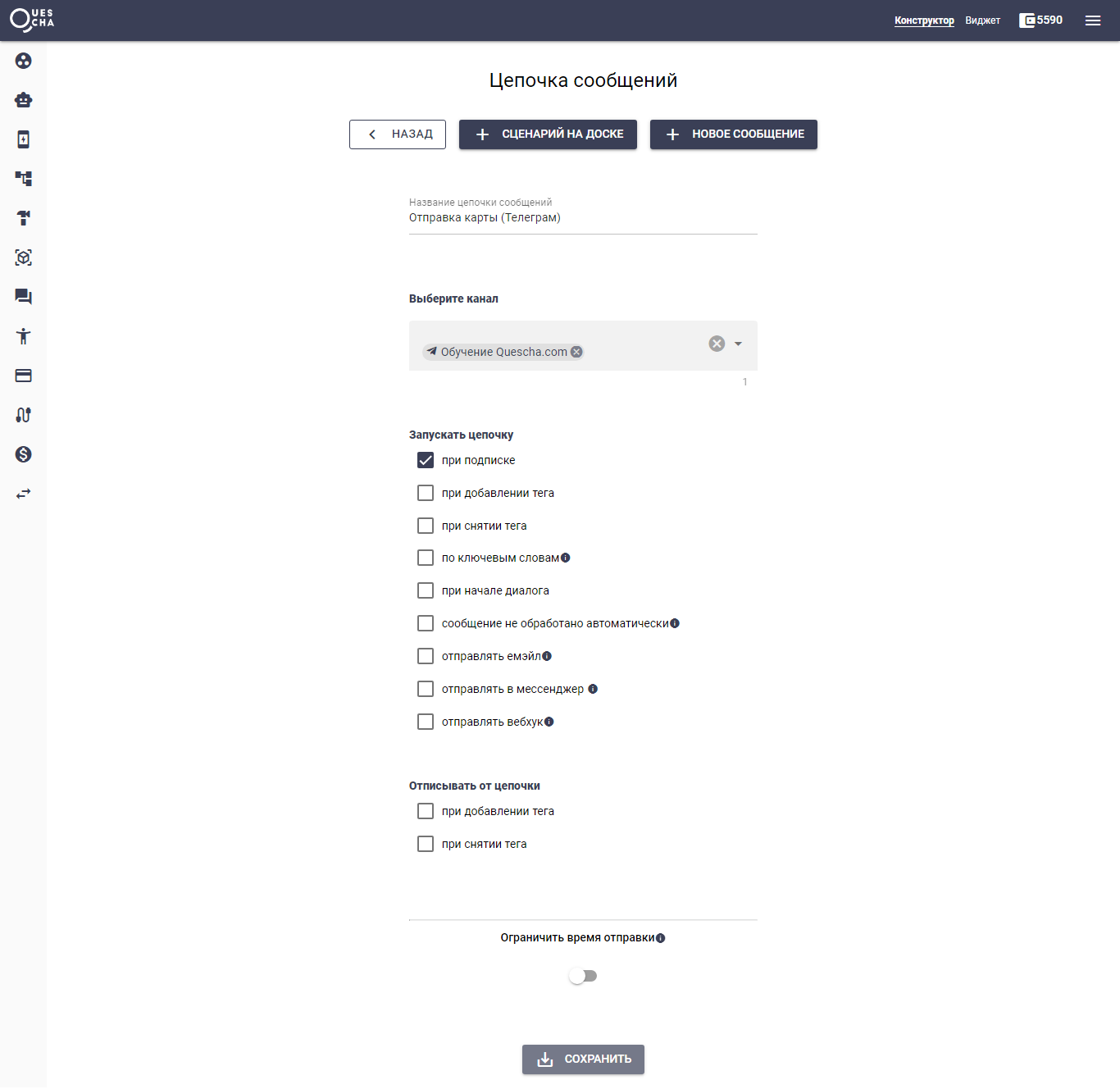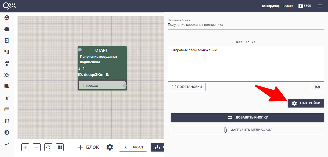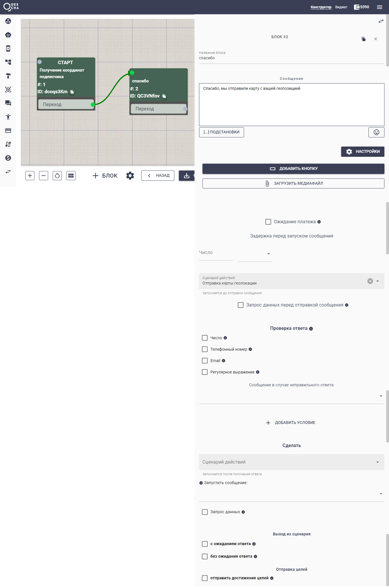 Создадим цепочку и сообщение, где будем запрашивать координаты подписчика