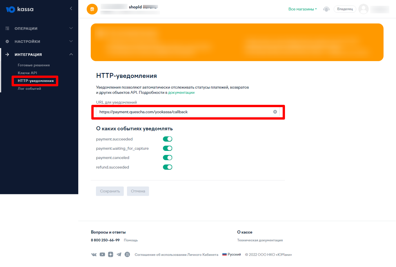 Здесь вы должны установить адрес для уведомлений https://payment.quescha.com/yookassa/callback