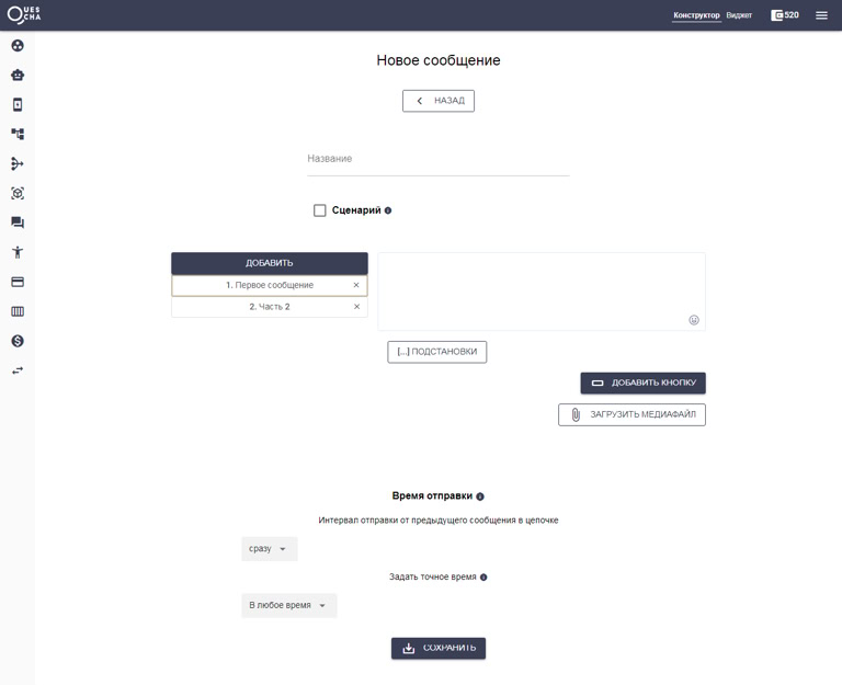 Также можно менять порядок частей простым перетаскиванием. К каждой части сообщения можно прикрепить кнопки, которые могут быть ссылками или производить определенные действия.